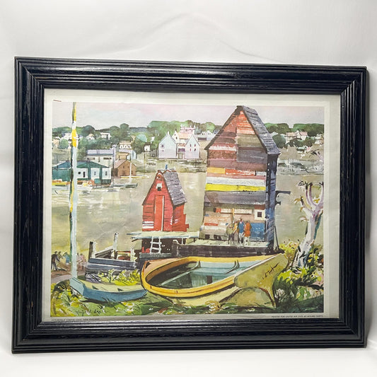 1958 Millard Sheets Print "Picturesque Lobster Cove New England"