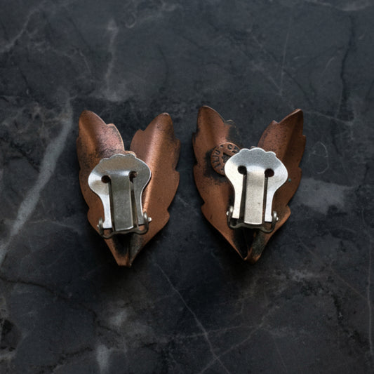 Vintage Bell Trading Post Copper Leaf Clip-On Earrings
