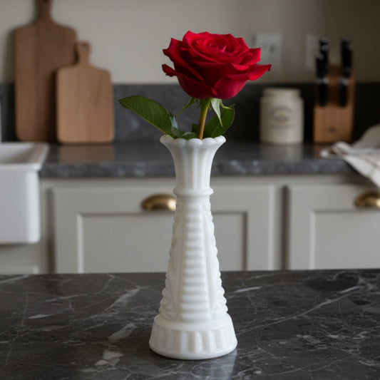 Our Vintage Milk Glass Collection celebrates the timeless beauty of this beloved opaque glassware with its signature milky-white glow, intricate patterns, and elegant shapes.