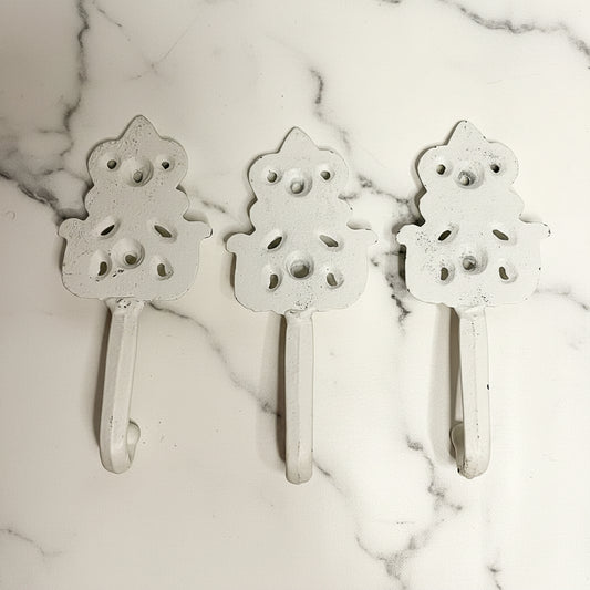 Decorative White Cast Iron Wall Hooks - Set of 3